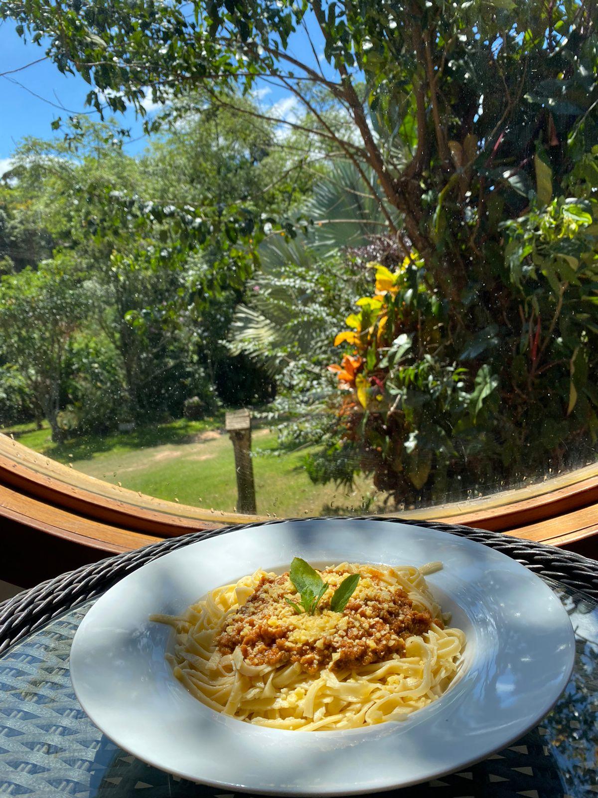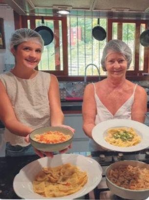 Então, a Lena decidiu que continuaria produzindo massas artesanais, teria uma ocupação e uma fonte de renda, tem um cardápio bem variado e com os acompanhamentos a refeição fica perfeita, com um toque que só a Lena