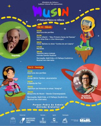 O Musin, apoiado pela Semc e Semmam, tem patrocínio do Instituto Cultural Vale, por meio da Lei Federal de incentivo à Cultura.